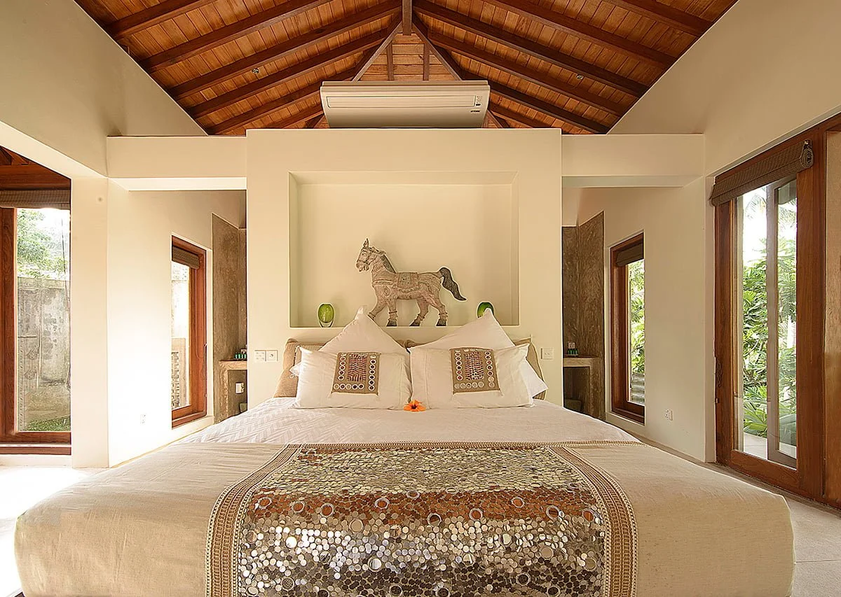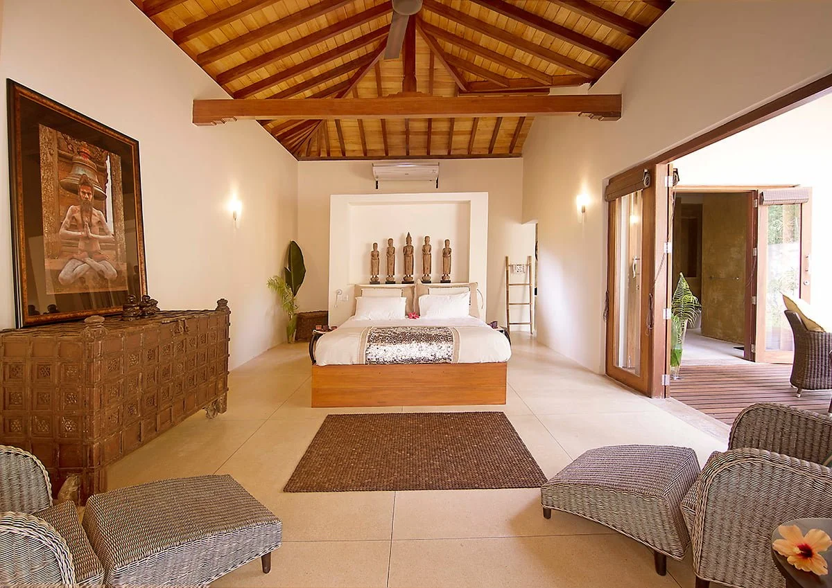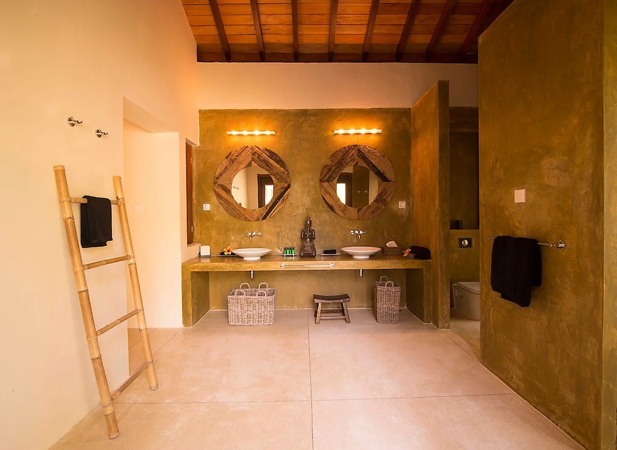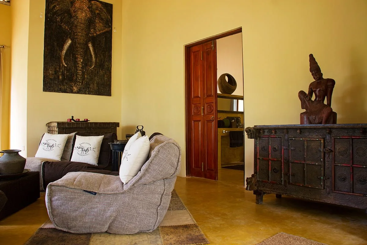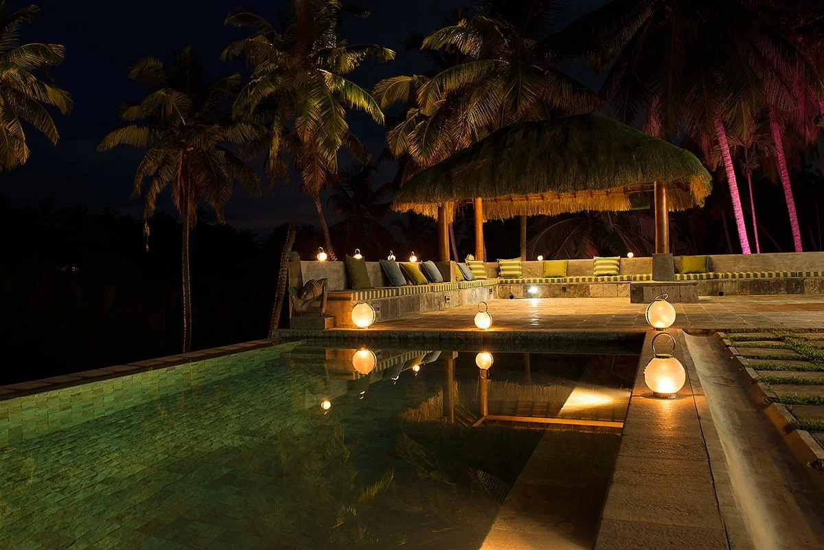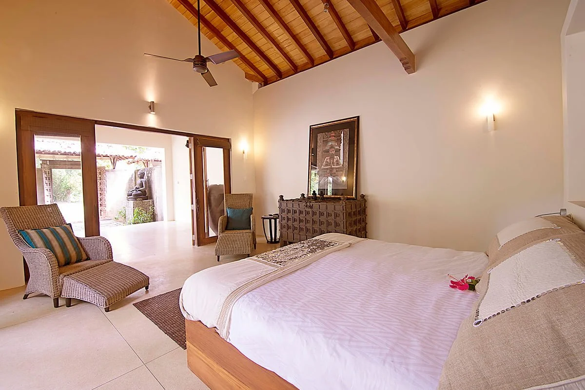 Kumara Villa is a tropical paradise at its best. Modern, luxurious and yet retaining a distinctive traditional charm in its architecture, layout and design, the villa is an ideal base to enjoy a slightly off the beaten track holiday with lush greenery and local attractions for. The villa enjoys a slightly elevated setting, allowing guests to take in the beautiful views of the swaying palms. Kumara Villa itself is made up of open plan pavilions. The three king size bedroom suites are set in their own walled gardens and have their own indoor/ outdoor bathing facilities. Besides, they also have large private terraces fronting the stunning tropical views. The main living pavilion has bi-fold doors and windows and opens into the beautifully landscaped gardens and the large decked saltwater pool area. Kumara villa has a fully staffed kitchen, which is located separately from the main living room and dining pavilion. The open plan dining room has a 12 ft table with 8 chairs and bifold doors and windows allowing in the tropical breeze. The living area is comfortably fitted for relaxing, socializing and entertaining. It overlooks the lush tropical gardens on one side and the shimmering saltwater pool on the other. Sun loungers decorate the poolside. There is also a pergola with shaded and cushioned seating under an antique fan. The villa is fully serviced by cooks, house girls, pool attendant, 24 hr security and a private guest manager.
