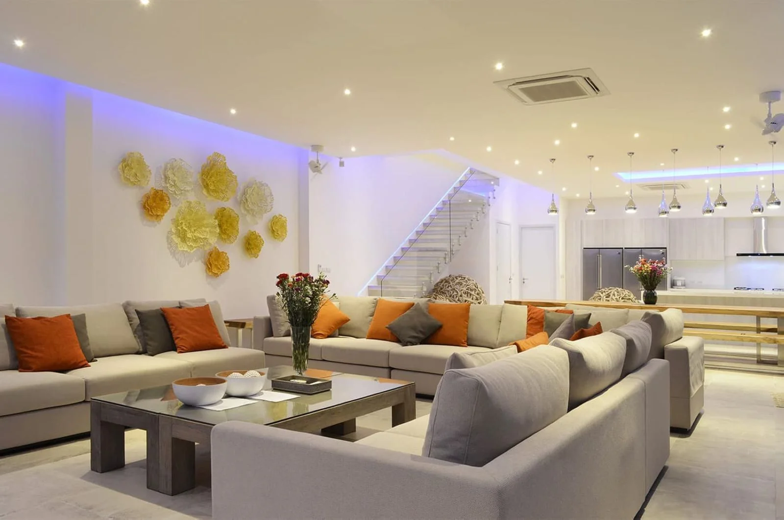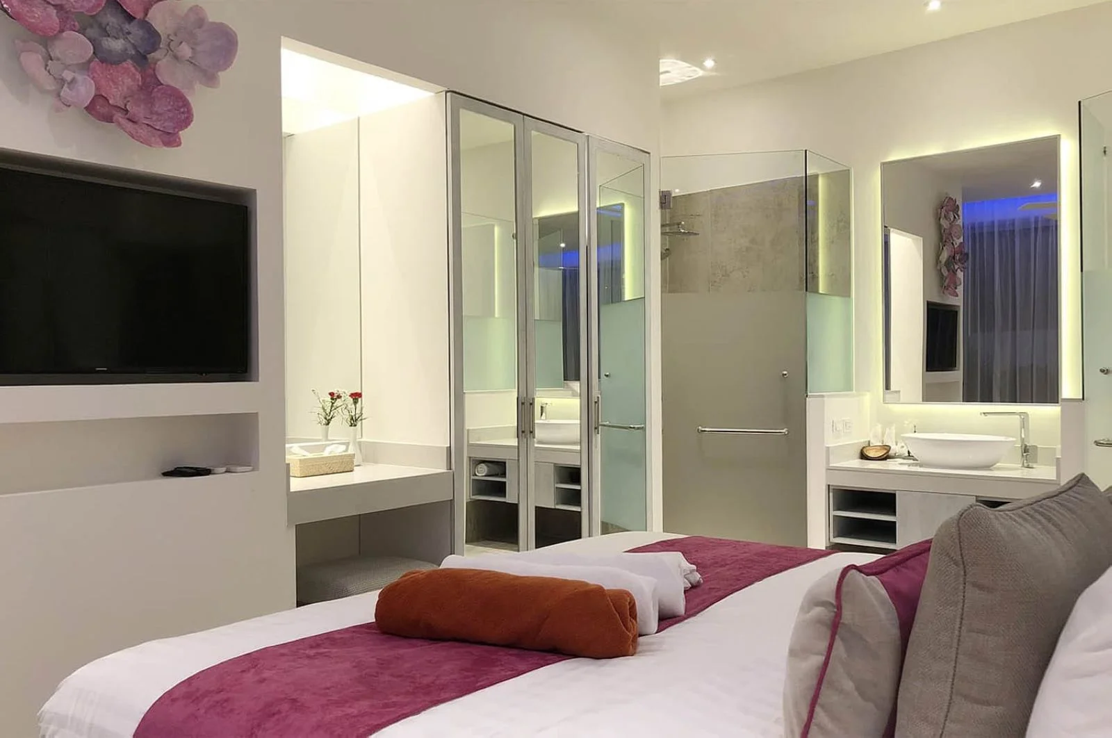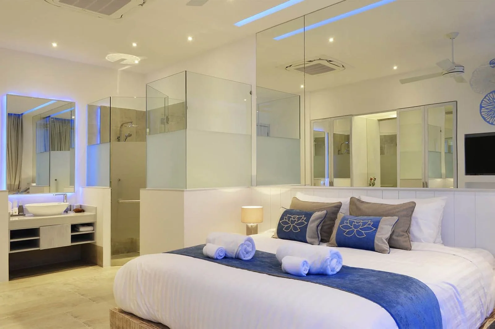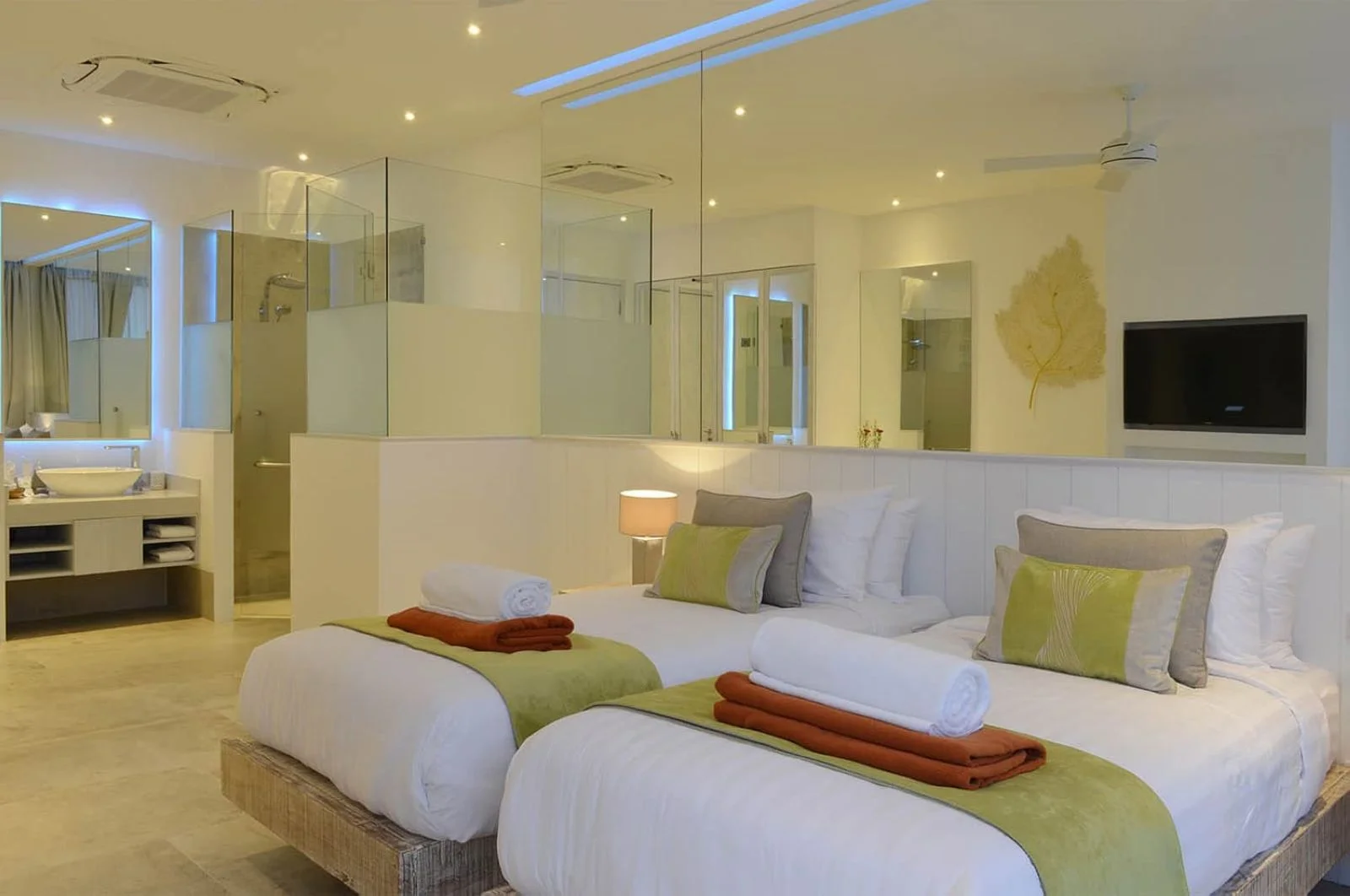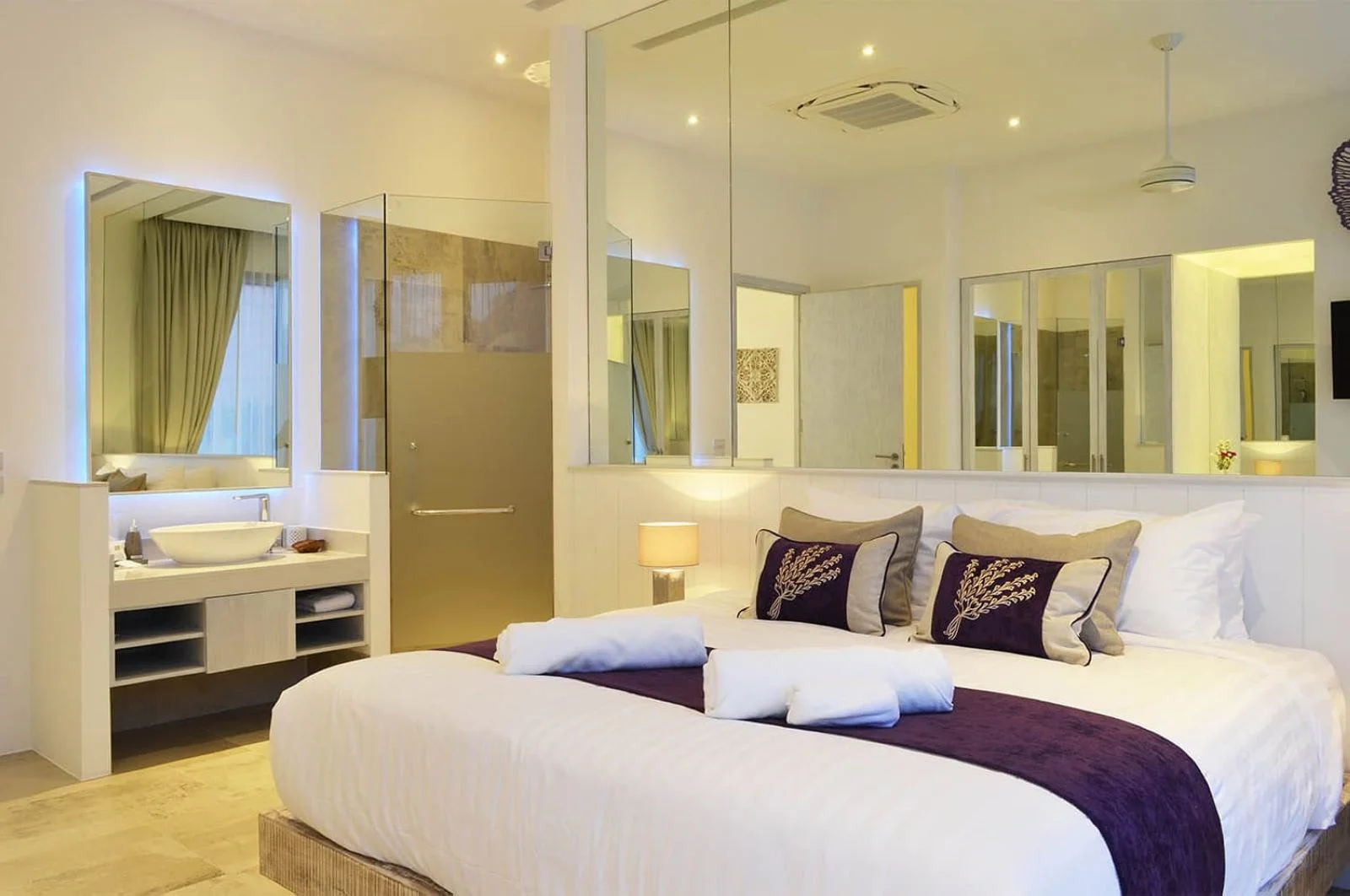 Floor PlanThe standard number of guests for Villa Baan Amandhara is 12 in 6 bedrooms. If required, it is possible to increase the number of guests by setting up extra beds within the existing rooms (at extra cost). The maximum capacity is 18 guests. Each bedroom features a king size bed which can be appointed as 2 single beds if requested.