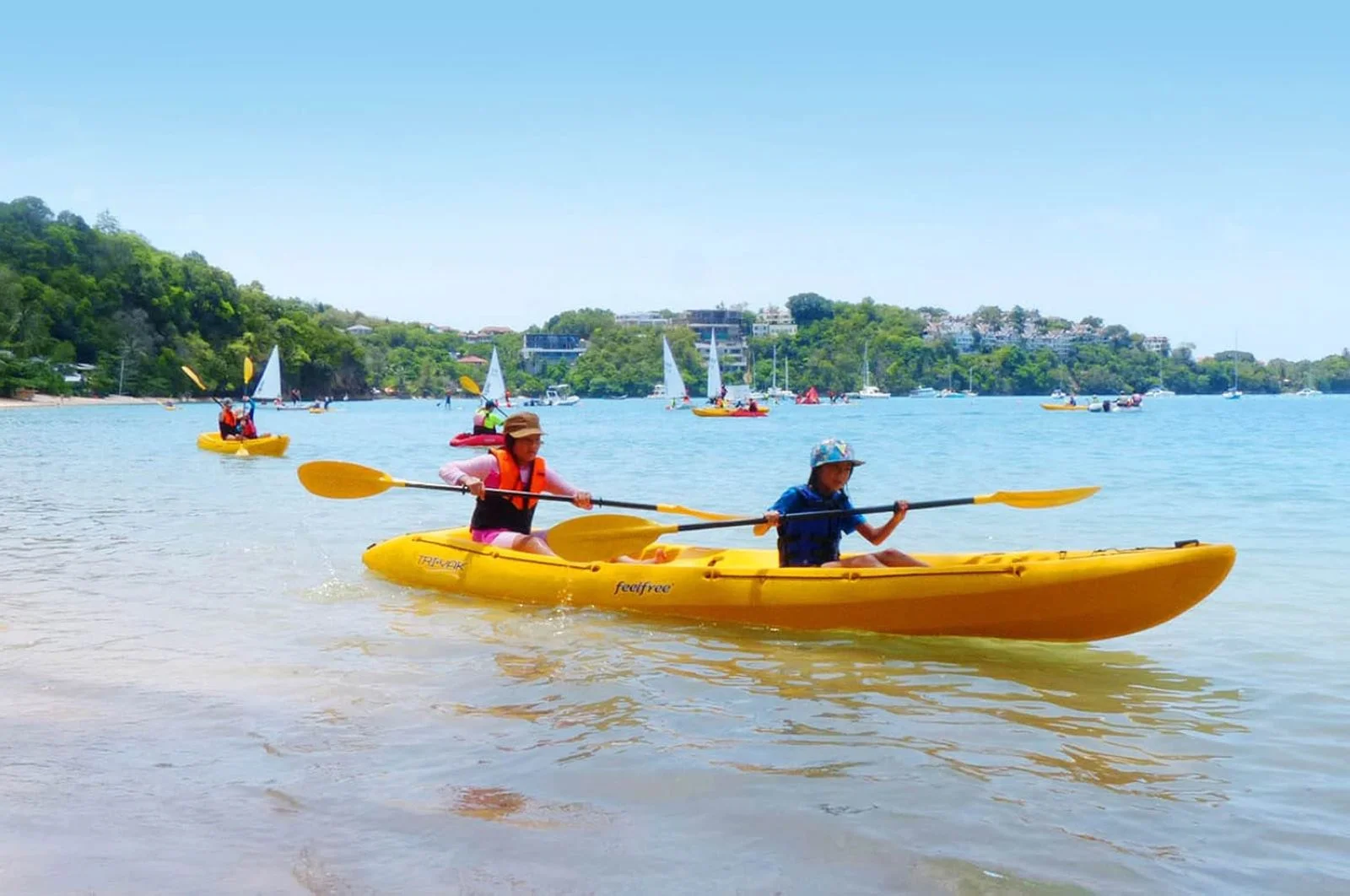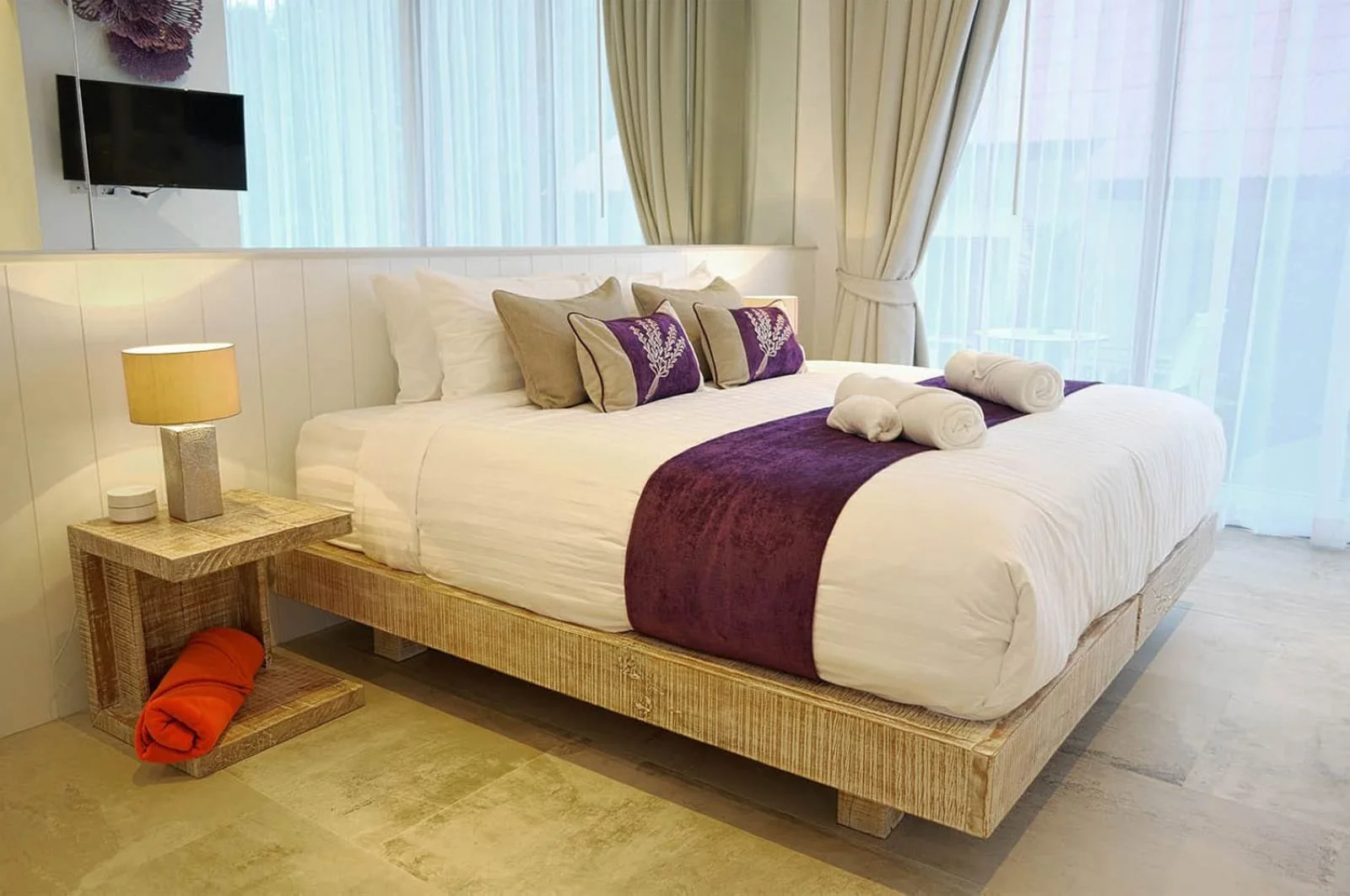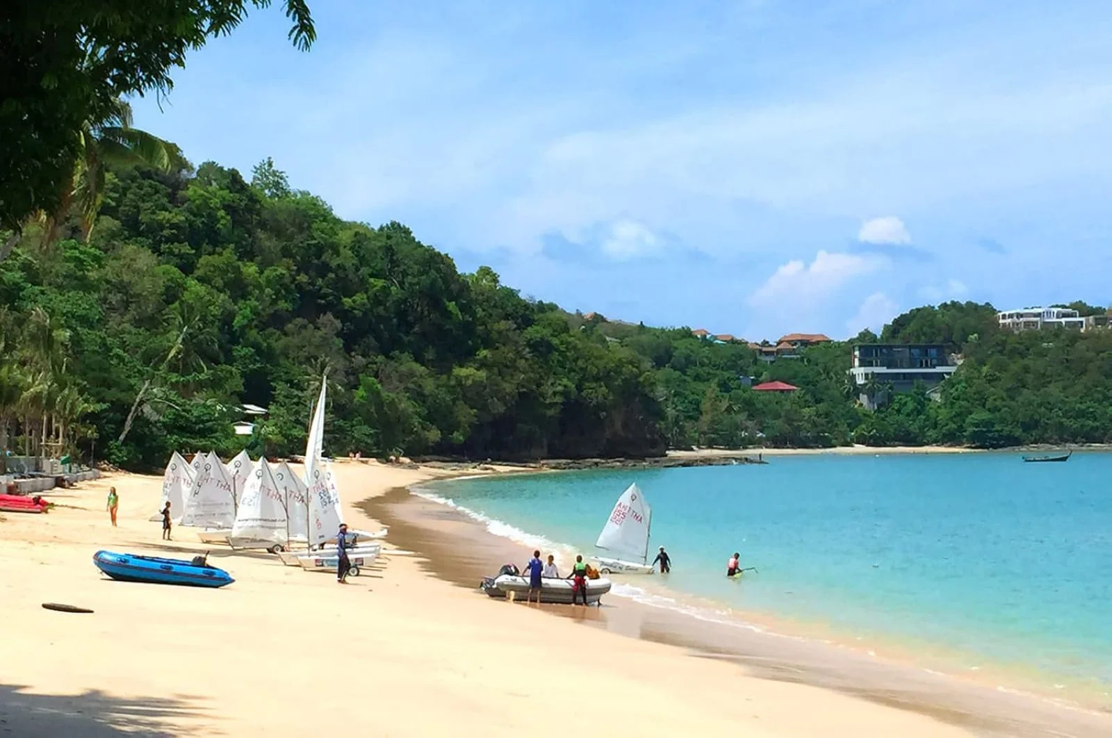 One of Phuket’s most beautiful retreats, located directly on the beach. Ao Yon beach is one of Phuket’s most beautiful beaches, palm-fringed, with white-sand and clear blue seas. It is also a natural picturesque and sheltered bay, and is therefore one select few beaches on Phuket that offer you all-year protection and 365 days a year swimming. Phuket’s west coast beaches are closed for most of the period from May thru Nov, plus closed on any days with strong tides. This is especially important for families with children, our adults that like to swim…