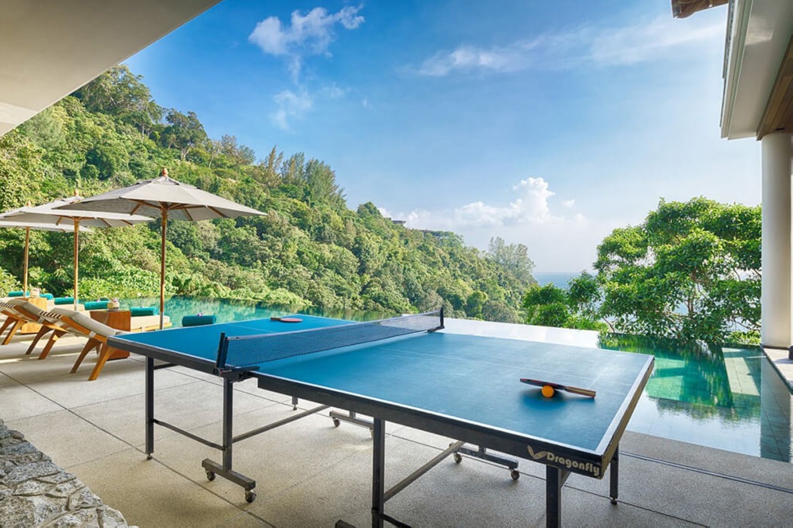 Experience true luxury at Baan Banyan Villa, nestled in the treetops of Kamala Bay. This contemporary retreat seamlessly blends with the tropical jungle surroundings, offering a tranquil escape for families and groups. With 4 master bedrooms and 2 additional bedrooms, all with ensuite bathrooms, this villa can accommodate up to 12 people. Situated on a promontory on Phuket’s west coast, Baan Banyan Villa boasts stunning sunsets and breathtaking ocean views. The villa is thoughtfully designed with a fitness room, ping-pong table, and a dedicated Sala for yoga or meditation. Whether you seek solitude or adventure, this villa has it all. Our trained professionals ensure an unforgettable stay, providing exceptional service throughout your visit. The villa features various living areas, including a fully-equipped kitchen, dining room, casual living room, and a traditional Thai Sala. The upper-level offers a fully-equipped kitchen, dining room, and outdoor seating areas for ultimate relaxation. On the lower-level, you’ll find a spacious family room and a range of activities for everyone to enjoy. Step out onto the large deck and pool area, perfect for lounging, relaxing, or playing ping pong. The pool offers shaded spots for reading and wooden sunbeds for sun worshippers. For those focused on health and wellness, Baan Banyan Villa provides a fully-equipped gym complete with treadmills, cross-trainers, rowing machines, and ample free weights. Taking a scenic 6-kilometer drive to Kamala Beach is rewarded with a dip into the clear waters of the long curved bay, making for the perfect end to a challenging workout. Indulge in luxury and serenity at Baan Banyan Villa, where nature meets modern comfort. Book your unforgettable stay today.