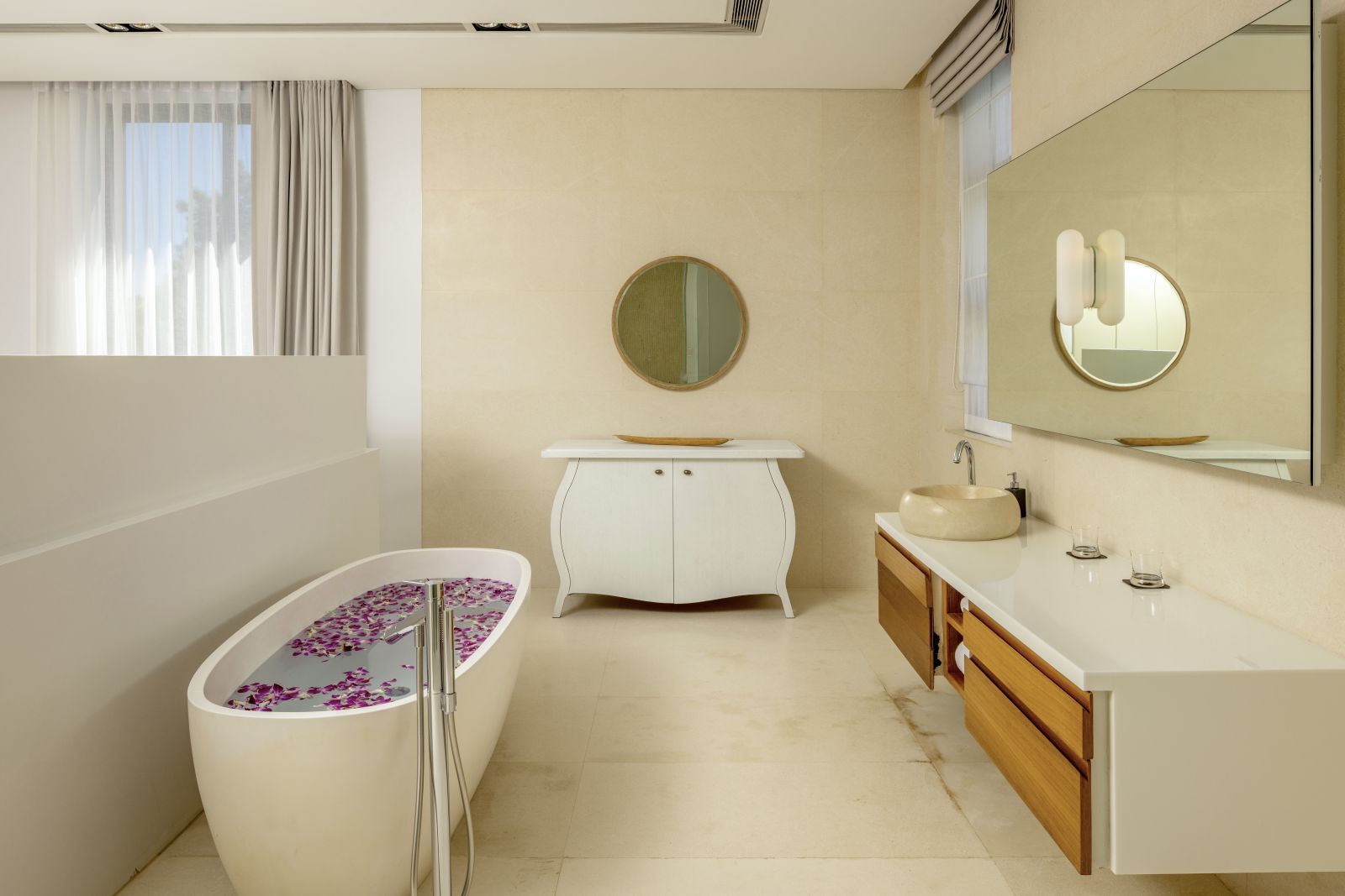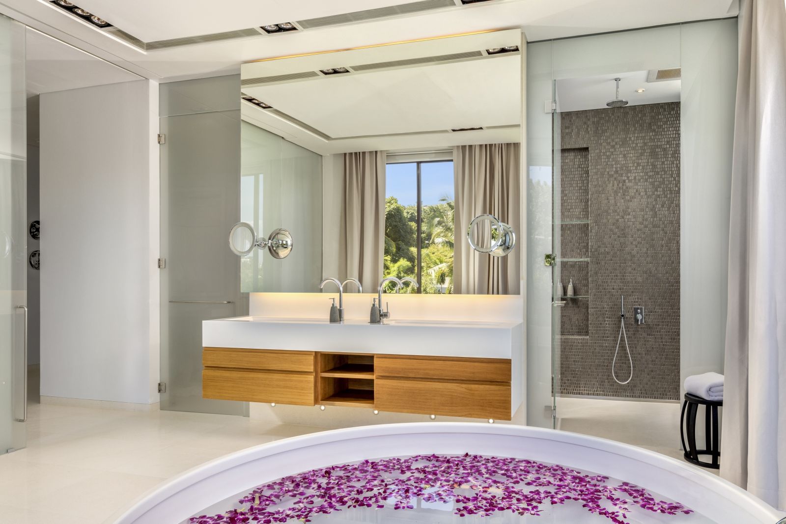 Escape to Villa Amarasara, a grand seven-bedroom beachfront estate where refined tropical luxury meets complete privacy. Spread across 16,000 square meters with 4,500 square meters of beautifully designed living space, the villa offers expansive lounges, elegant indoor-outdoor dining, and uninterrupted sea views that set the tone for an extraordinary stay. Two lavish master suites and five stylish guest bedrooms—each with its own ensuite—create serene retreats for every guest, while a spectacular 40-meter infinity pool, jacuzzi, children’s pool, and rooftop bar invite unforgettable moments from sunrise to sunset. Leisure and wellness are elevated with a fitness room and golf simulator, steam and sauna facilities, a cinema, game room, tennis court, and multi-purpose sports court. Families will appreciate the garden play area, water sports equipment, and thoughtful in-villa amenities such as SONOS, high-speed WiFi, and family essentials. Set within an exclusive gated estate with 24-hour security and access to on-site restaurants, Villa Amarasara offers an exceptional blend of luxury, comfort, and privacy—perfect for family escapes, wellness retreats, or intimate celebrations.
