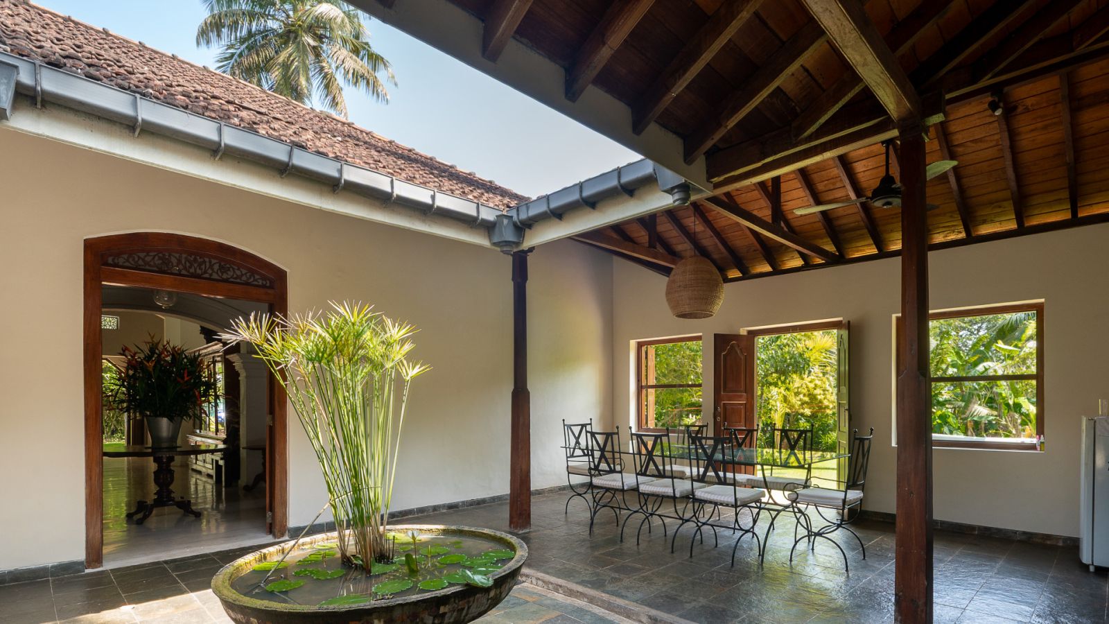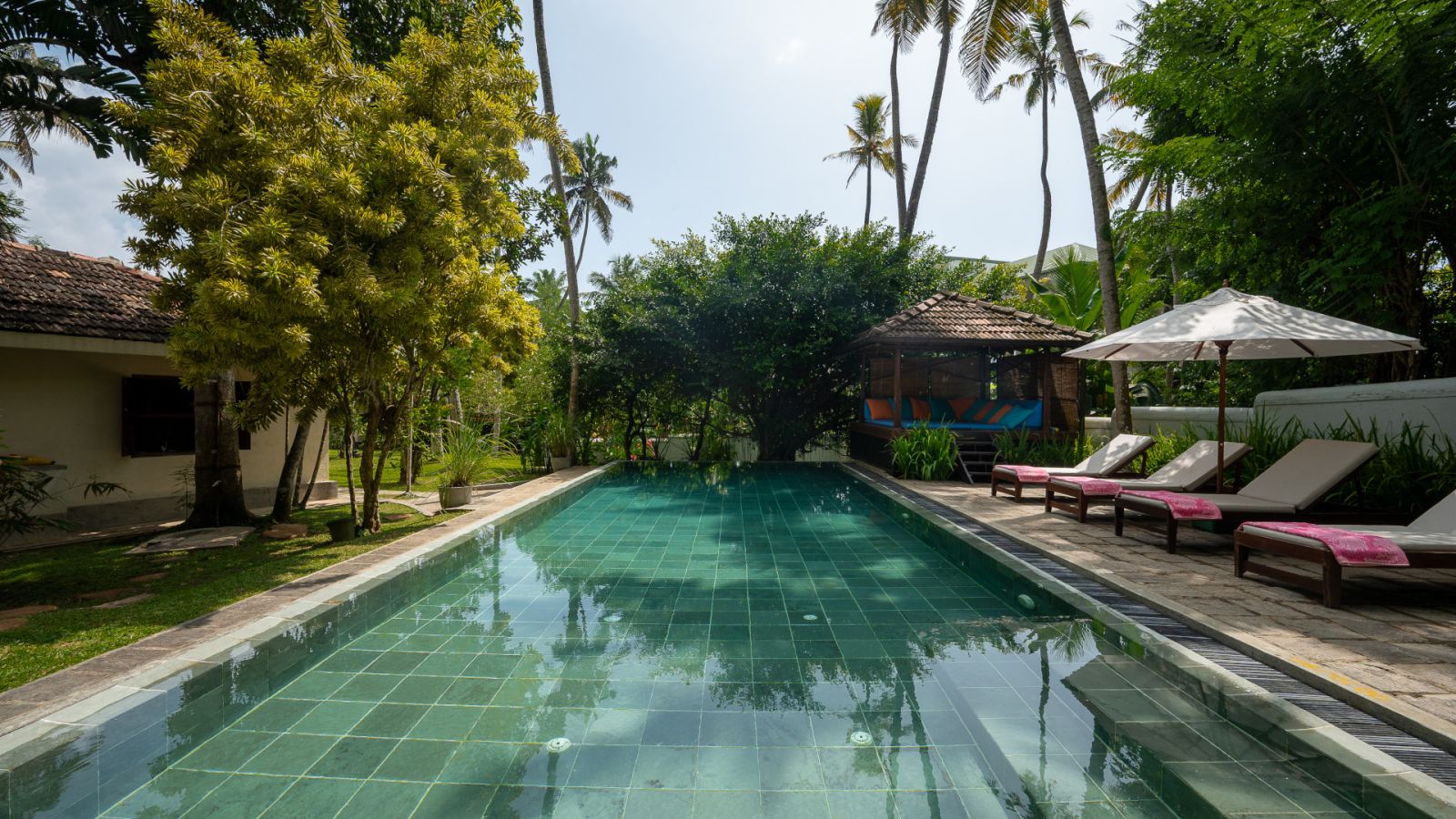 Located in the outskirts of Ahangama village famous for its stilt fishermen and beach sits this grand old 4 bedroom house. Set within half an acre of garden Coconut Grove is a family house perfect for those wishing to be close to the surf breaks of Ahangama, Midigama and Weligama. Facilities include 4 ensuite air conditioned bedrooms, an indoor sitting room, indoor dining room, a dining pavilion located next to a BBQ area and a large pool with pool side pavilion. The house comes with a housekeeper who will also make breakfast. She can also help with the meals and her rice and curry is delicious. The BBQ is self catering.