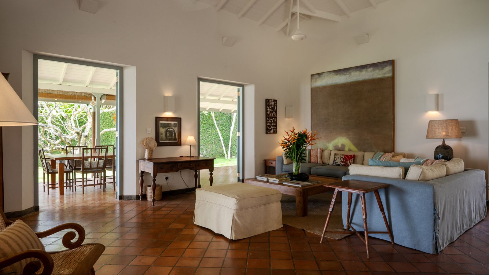 A charming family beach home that basks in the sunshine perched above a lagoon with seasonal surfing and swimming. There are 5 bedrooms; 4 in the main house that can be closed off around an inner courtyard making it perfect for families with small children, and the 5th bedroom in a garden suite. The house with polished terracotta floor tiles has a wide verandah facing the garden and ocean and is where the dining table is placed. The gardens are terraced with the house at the top, the next containing the pool and the third leading to the private gate on to the beach. This is a lovely house perfect for families.